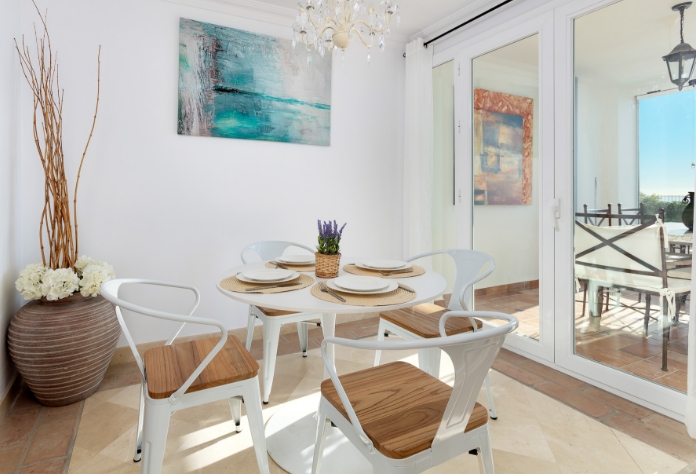 Omgivelserne byder på velholdte fællesarealer, gode strandrestauranter i gåafstand og nem adgang til golf, byliv og udflugter langs kysten. En stemningsfuld base ved havet, hvor ferien leves i et roligt tempo med natur, vand og lokale oplevelser lige ved hånden.